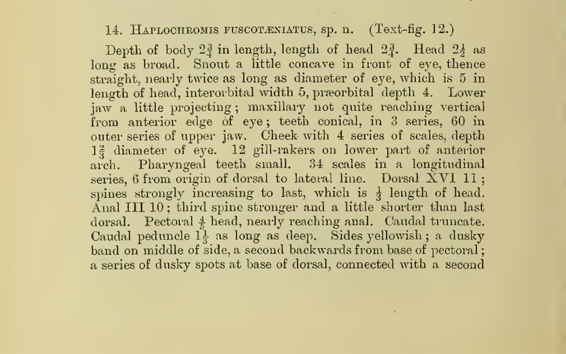 Description originale : Regan 1922, « The Cichlid Fishes of Lake Nyassa »; Proceedings of the General Meetings for Scientific Business of the Zoological Society of London 1921 (pt 4) (no. 36); p. 696
