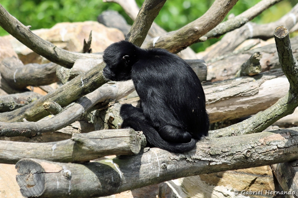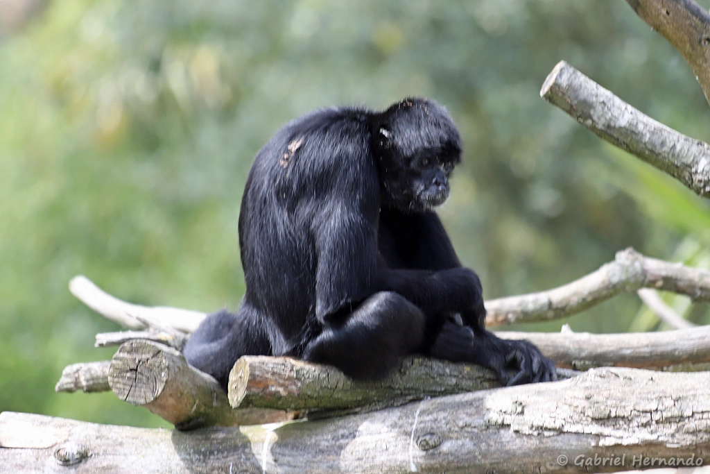 Ce singe arboricole est distribuée en Amérique du Sud, en Colombie, en Équateur et au Panama. Traversant difficilement les milieux découverts et artificiels, l’espèce est menacée par la déforestation et la fragmentation des forêts. Elle est de plus menacée par la chasse. De taille moyenne, avec un corps mesurant 39 à 53 cm, pour un poids de 5 à 8 kg, il présente une grande queue préhensile variant de 71 à 85 cm. L’espèce comprend 2 sous- espèces :
